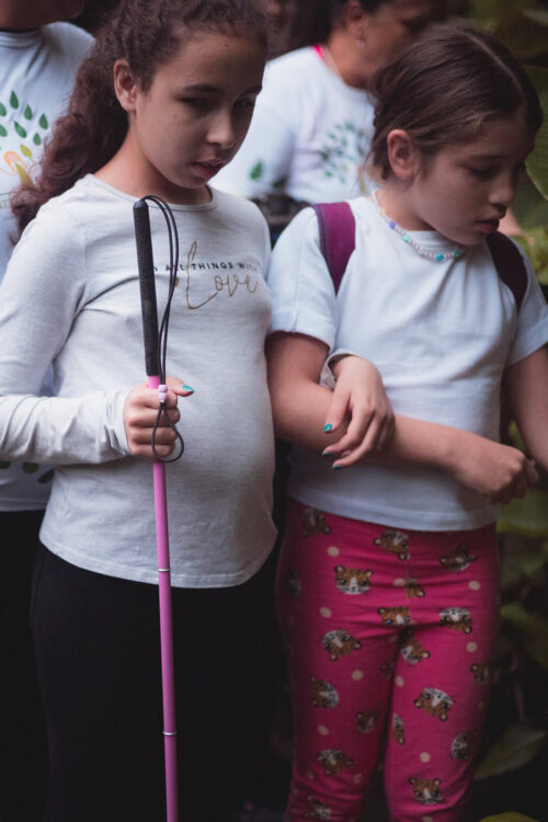 Natureza de Criança Inclusivo é um programa gratuito que reúne crianças com e sem deficiência visual para um dia de imersão na natureza com práticas esportivas e muitas brincadeiras, criando momentos de exploração e aventura.